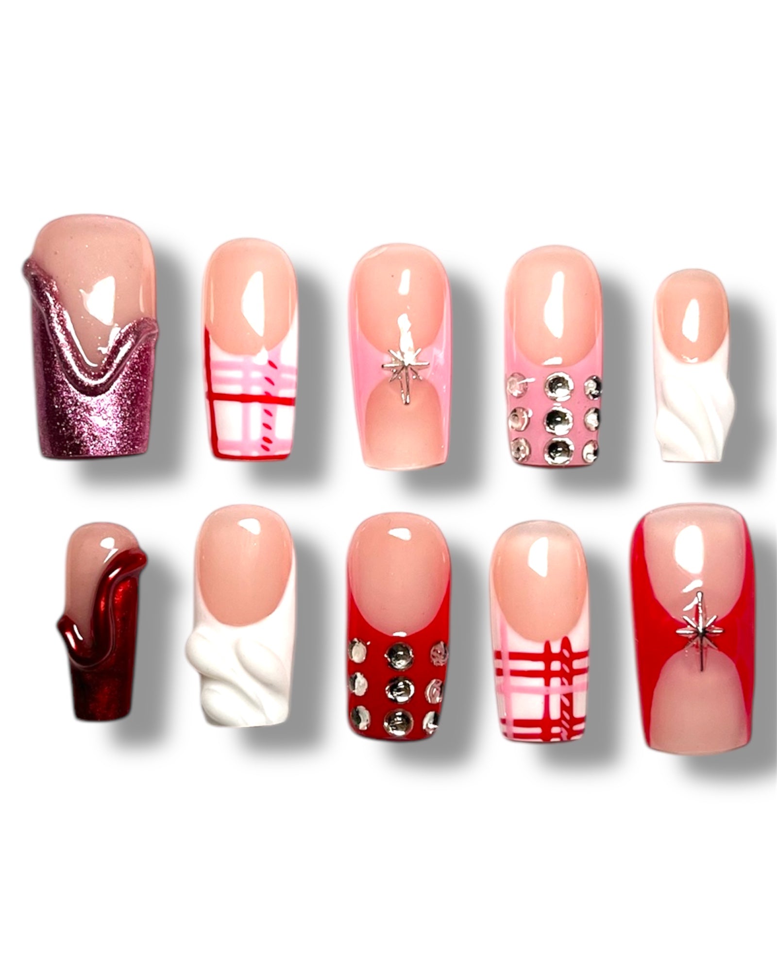 - 10 hand painted gel nails